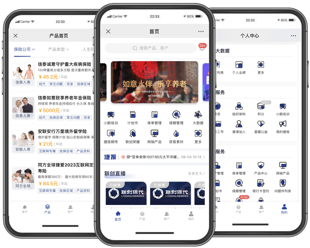 全新自研“聯(lián)創(chuàng)秒保”移動展業(yè)系統(tǒng),一站式展業(yè)支持工具,助力快速出單